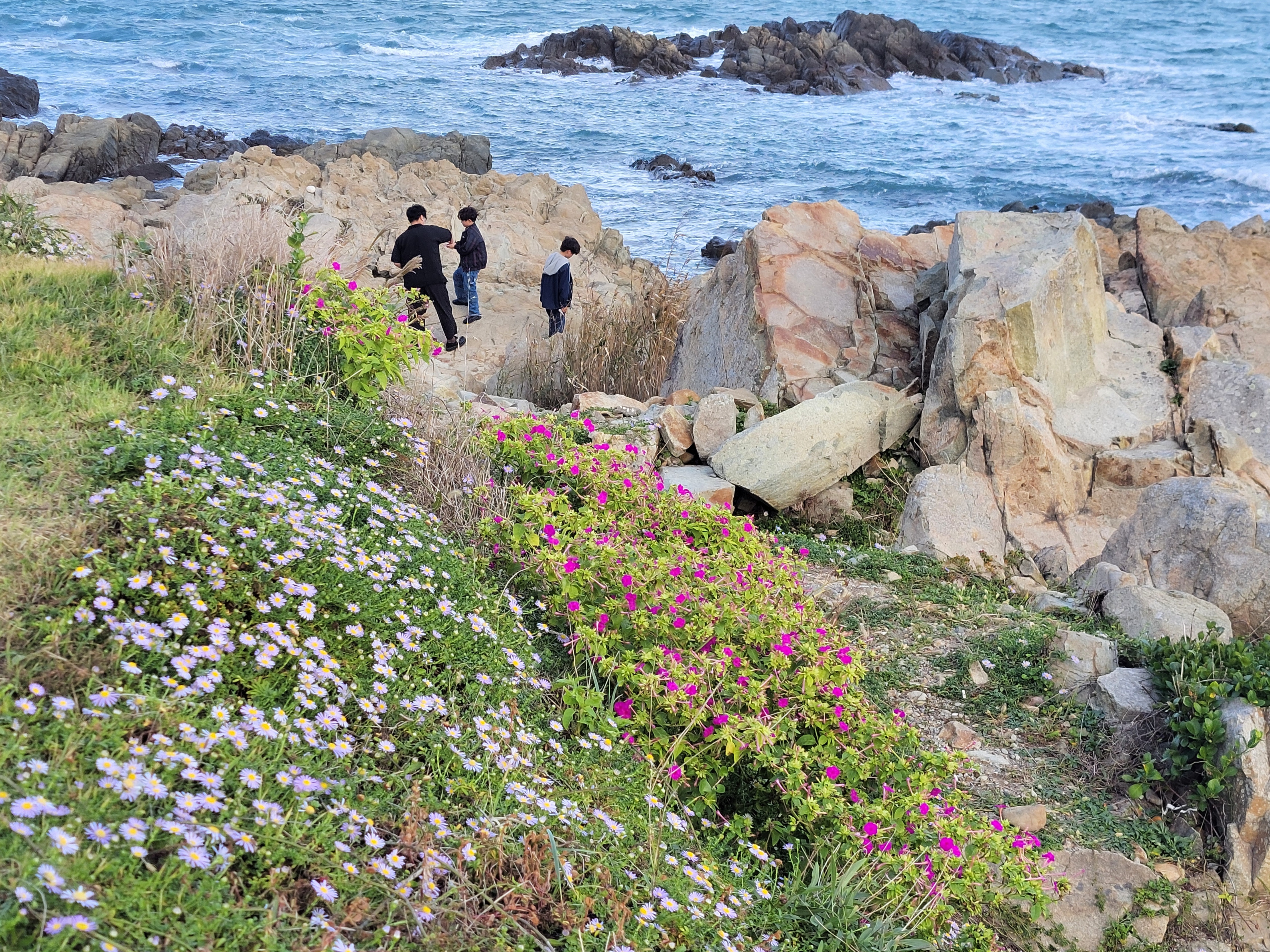보라빛 해국과 빨간 분꽃의 조화도 괜찮았다.