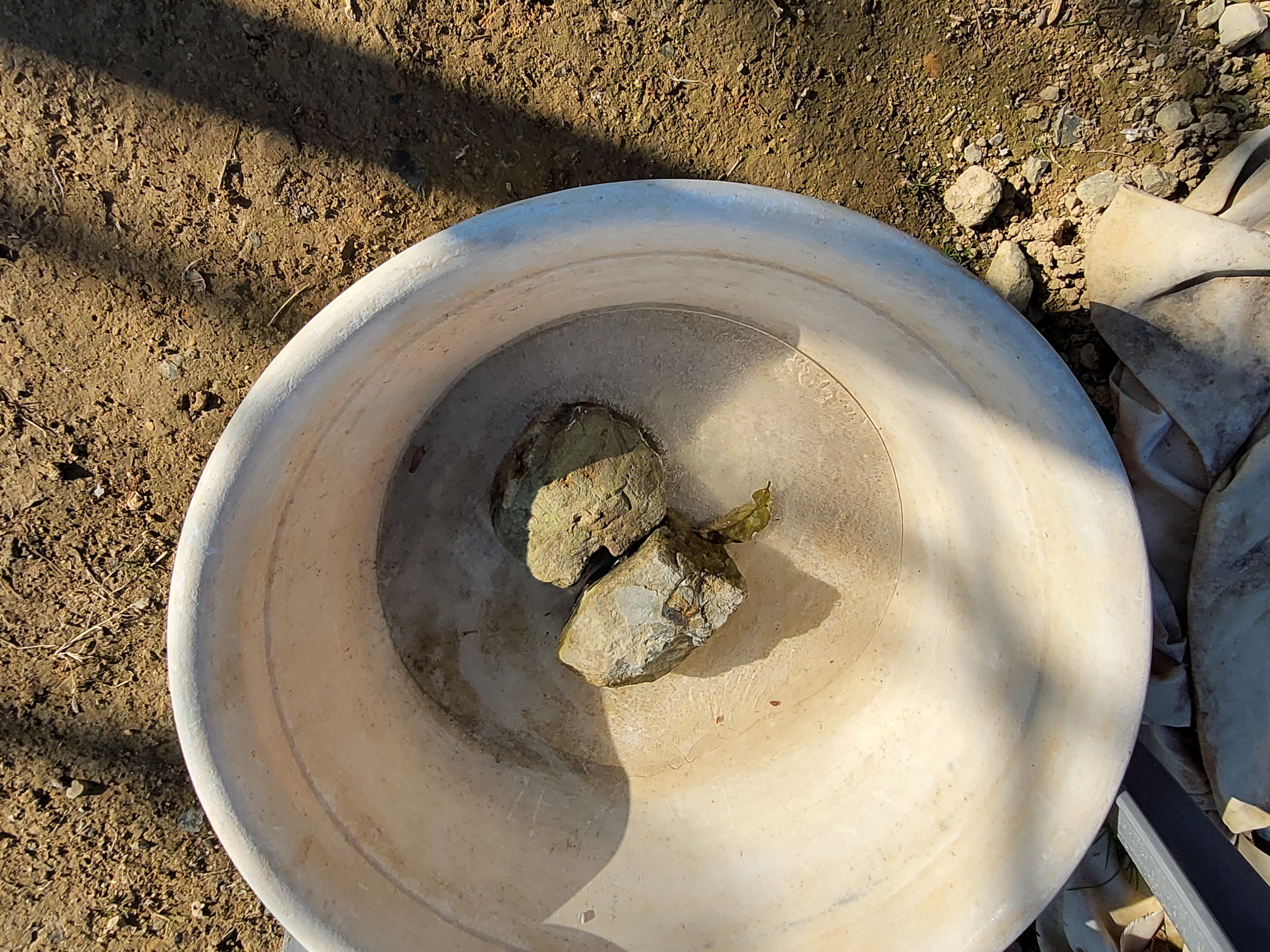 빗물이 고인 그릇에 얼음이 보였다.