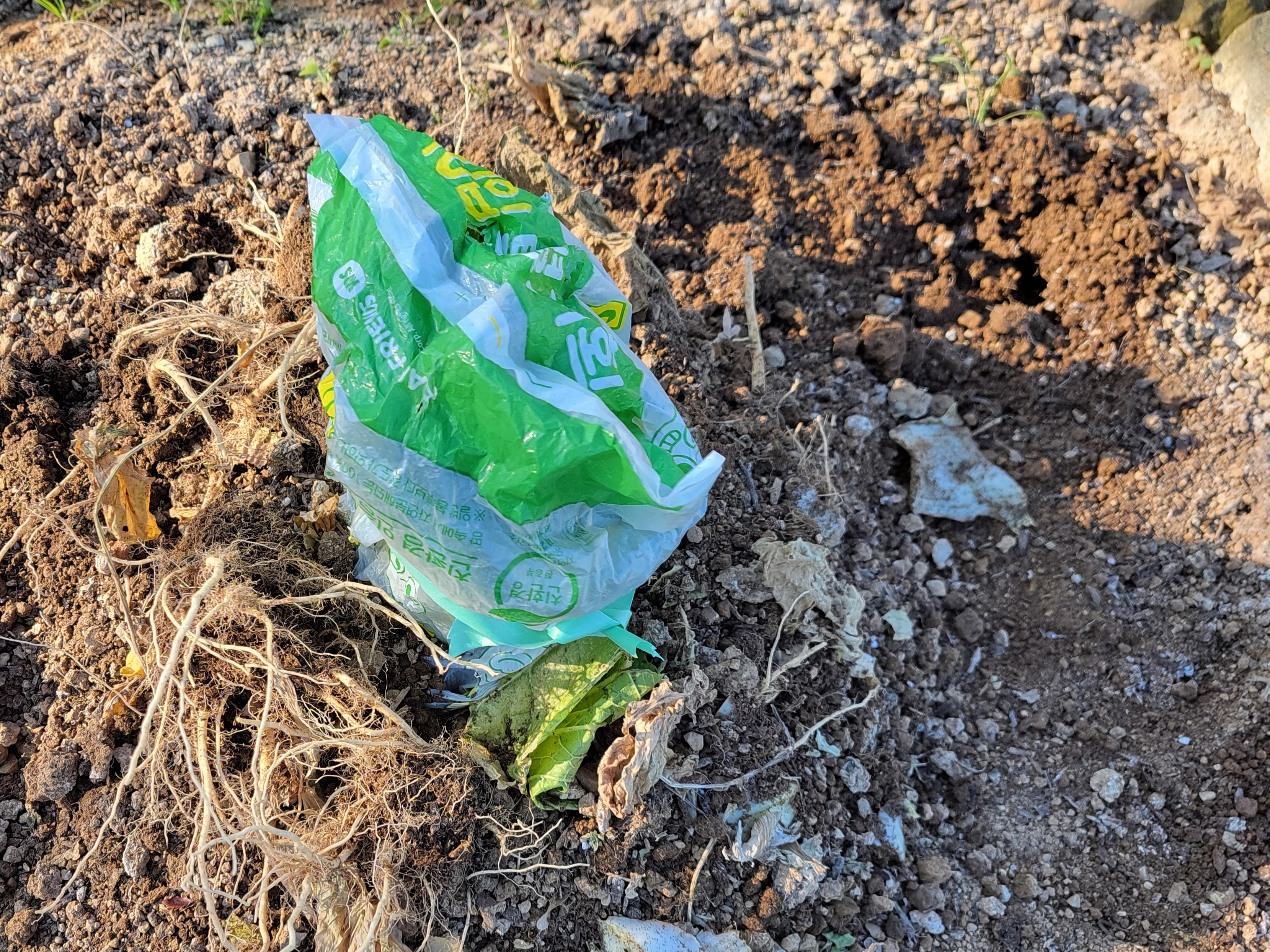 배추 뽑고나서 겨우 한포기 남겨놨다.