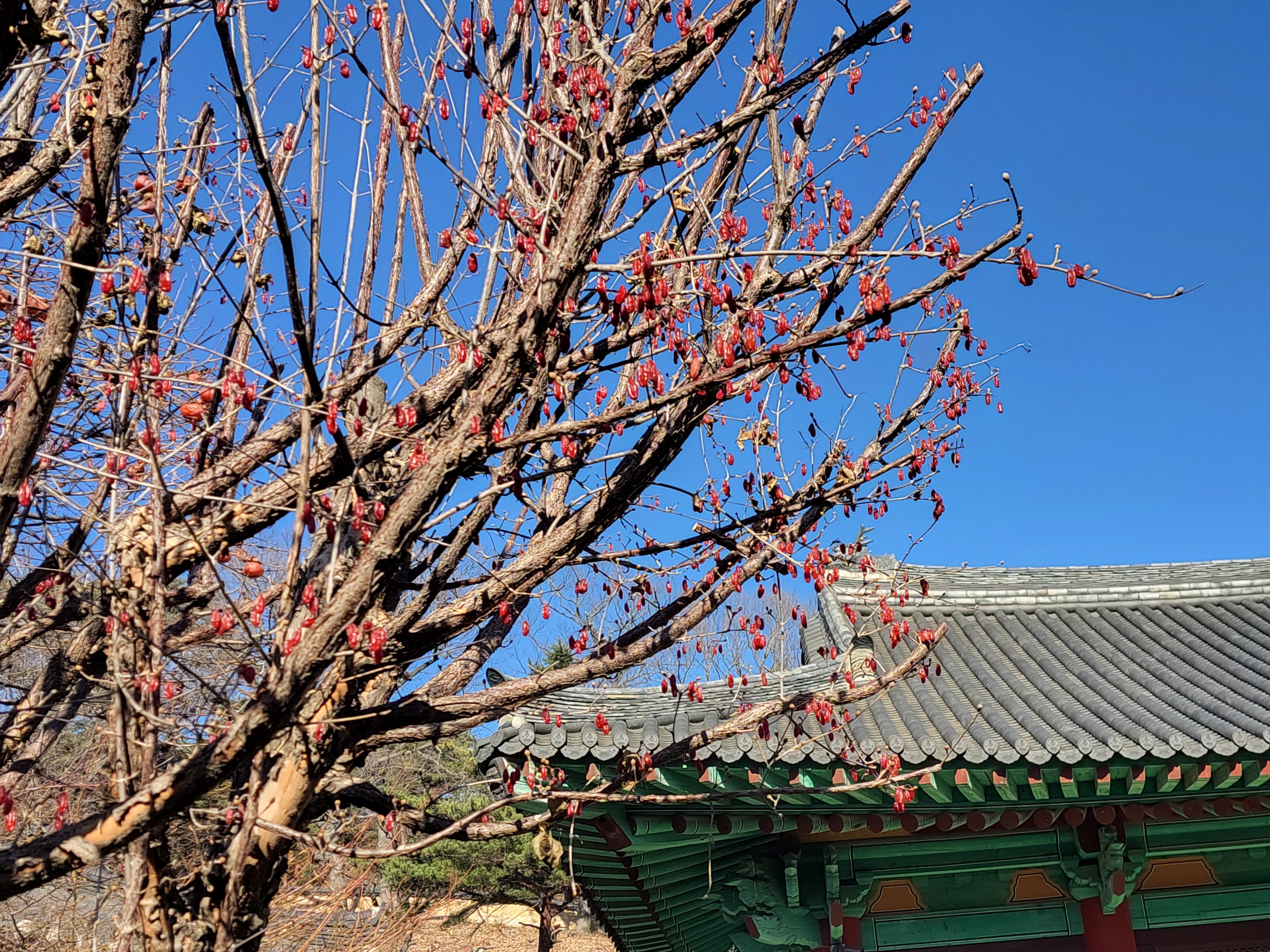 붉은 빛이 감도는 산수유 열매도