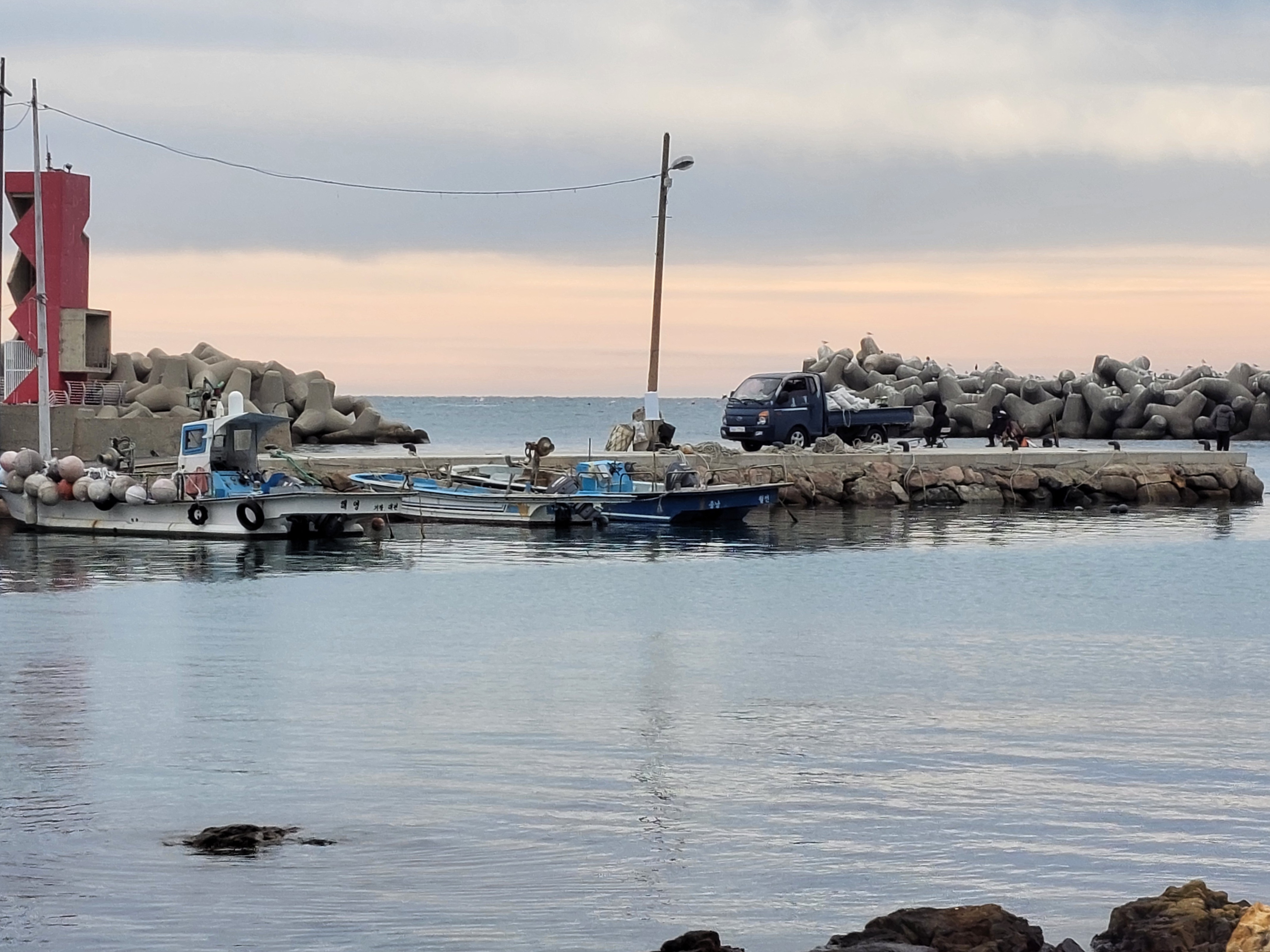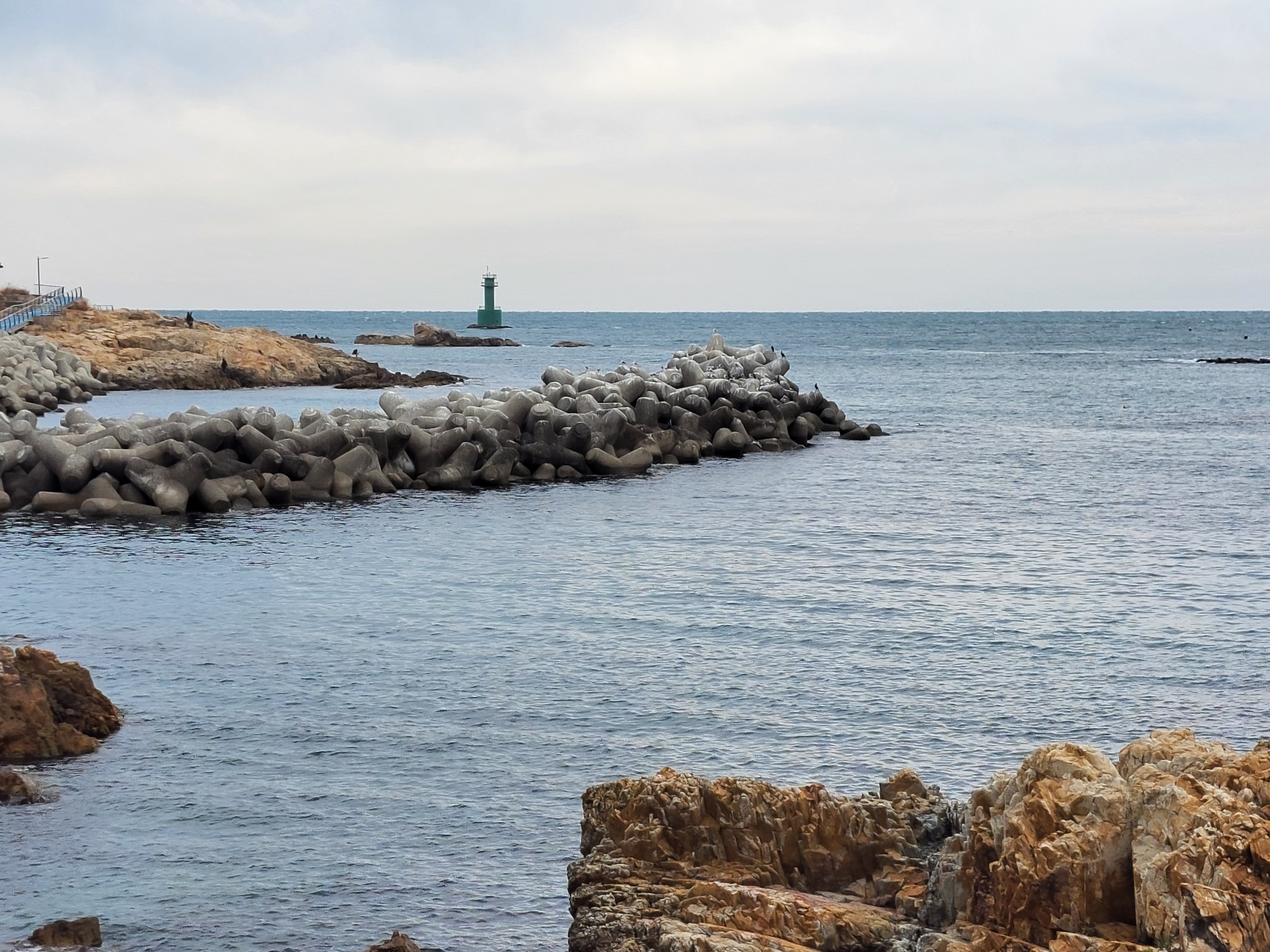 테트라포드 방파제 저쪽의