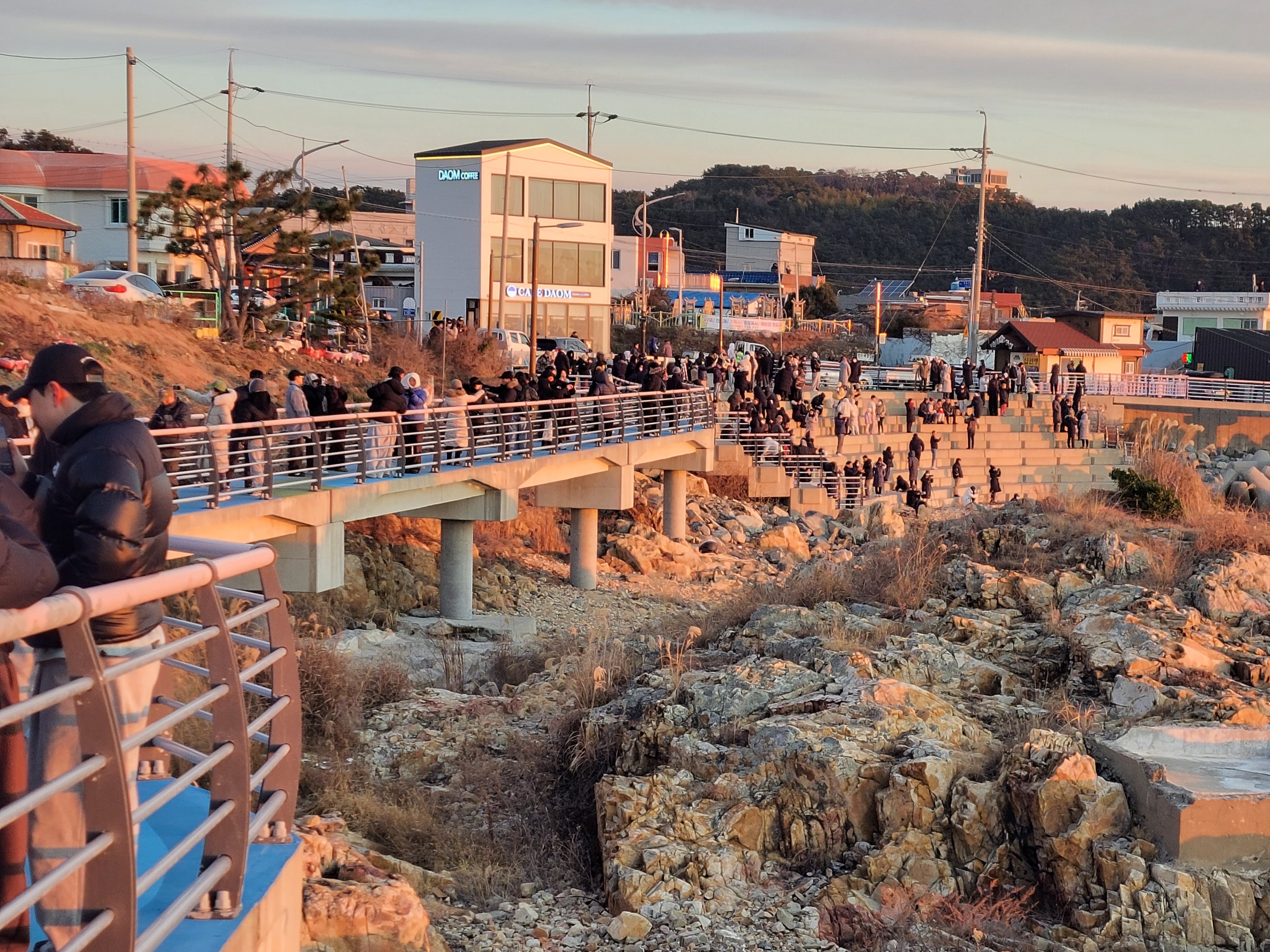 추위를 이겨낼 수 있는 복장으로 완전무장을 하고 많은 인파속의 해안가로 나가봤다.