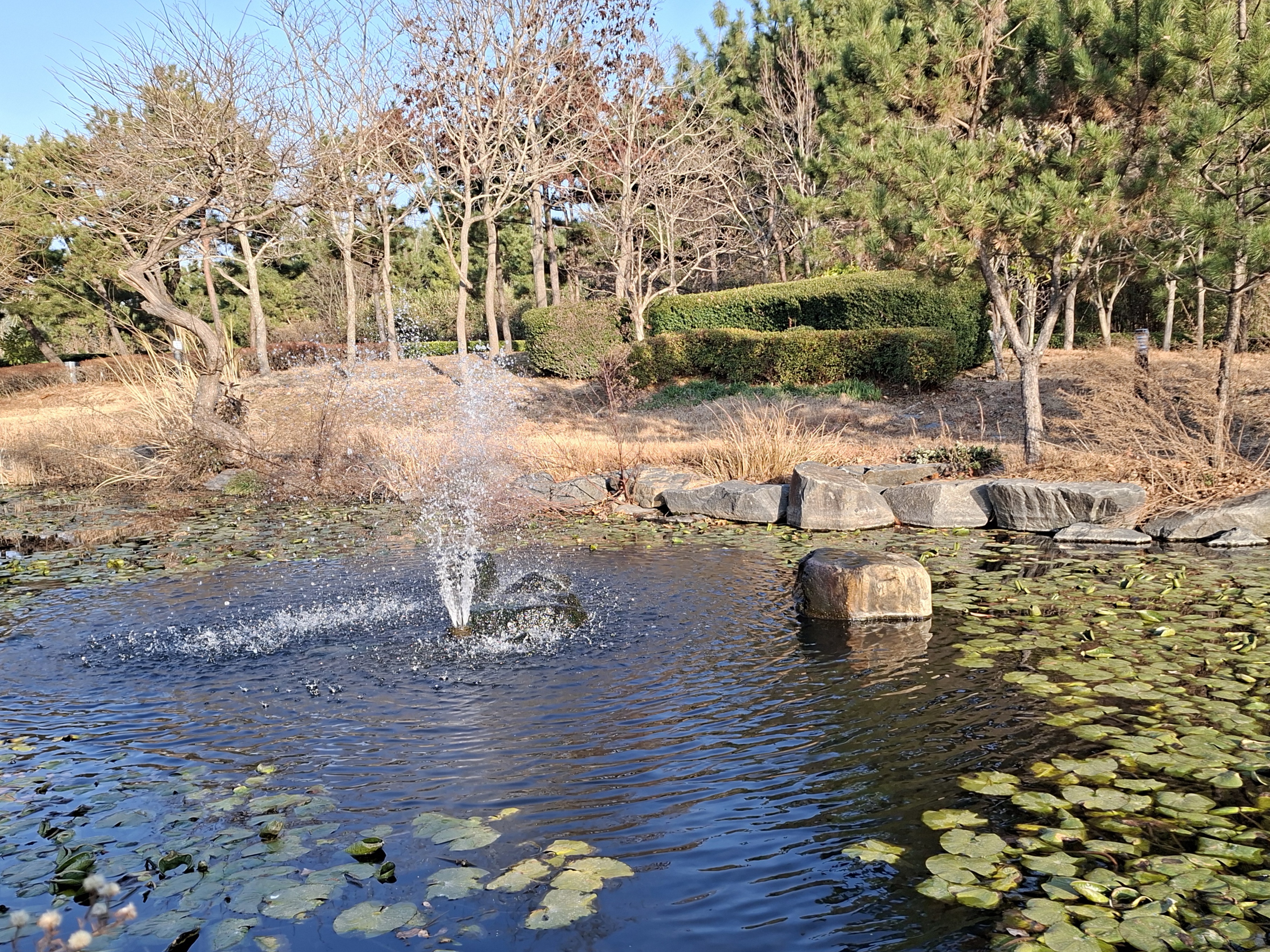 이곳 공원의 연못가에는