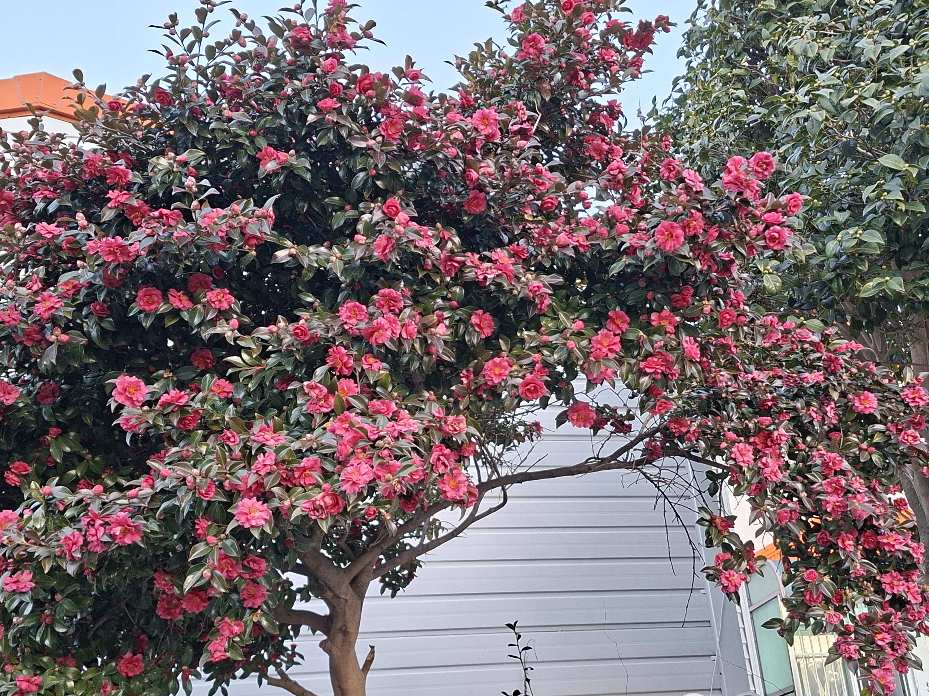 주택가 울타리 너머 매실나무도