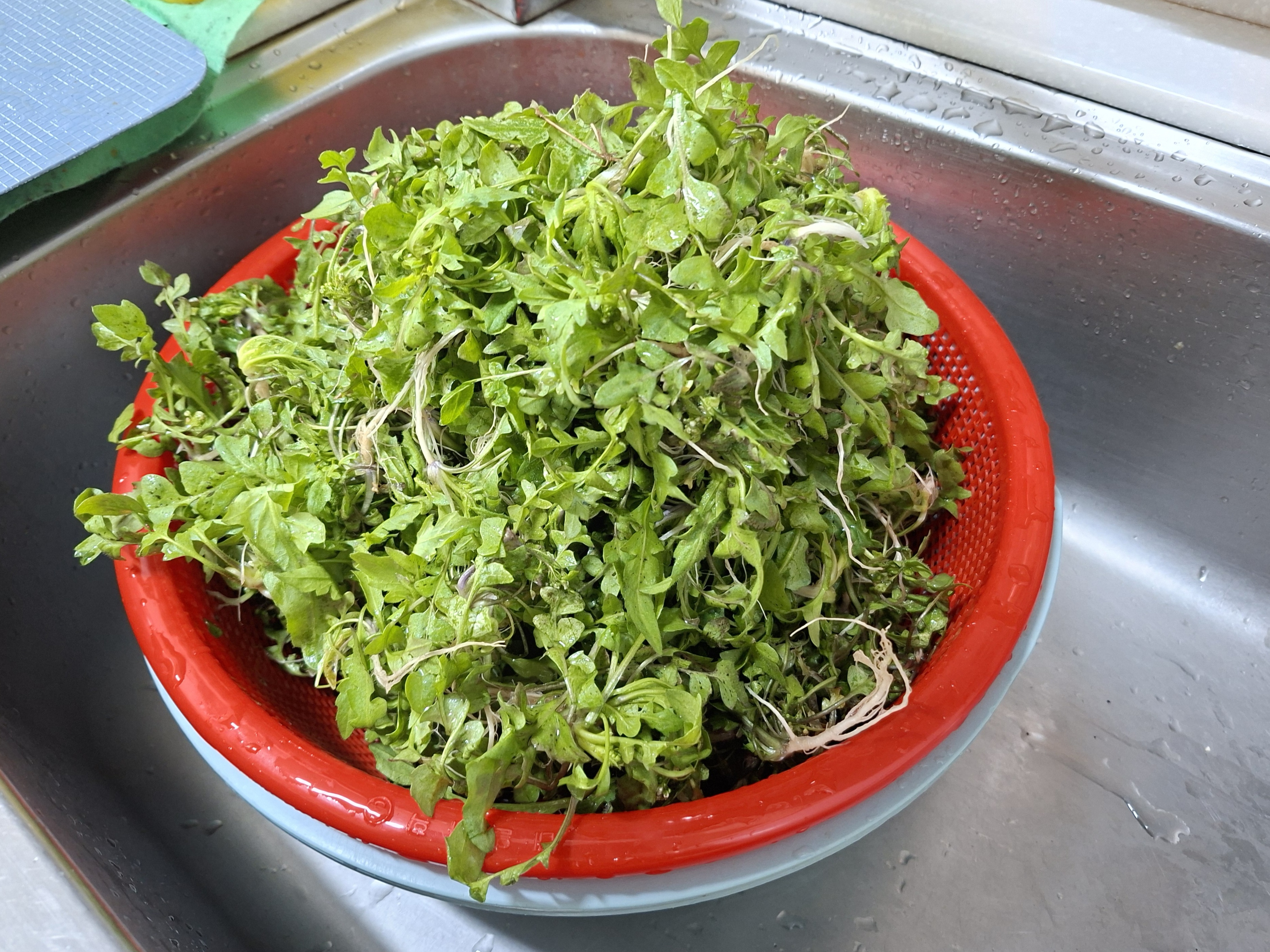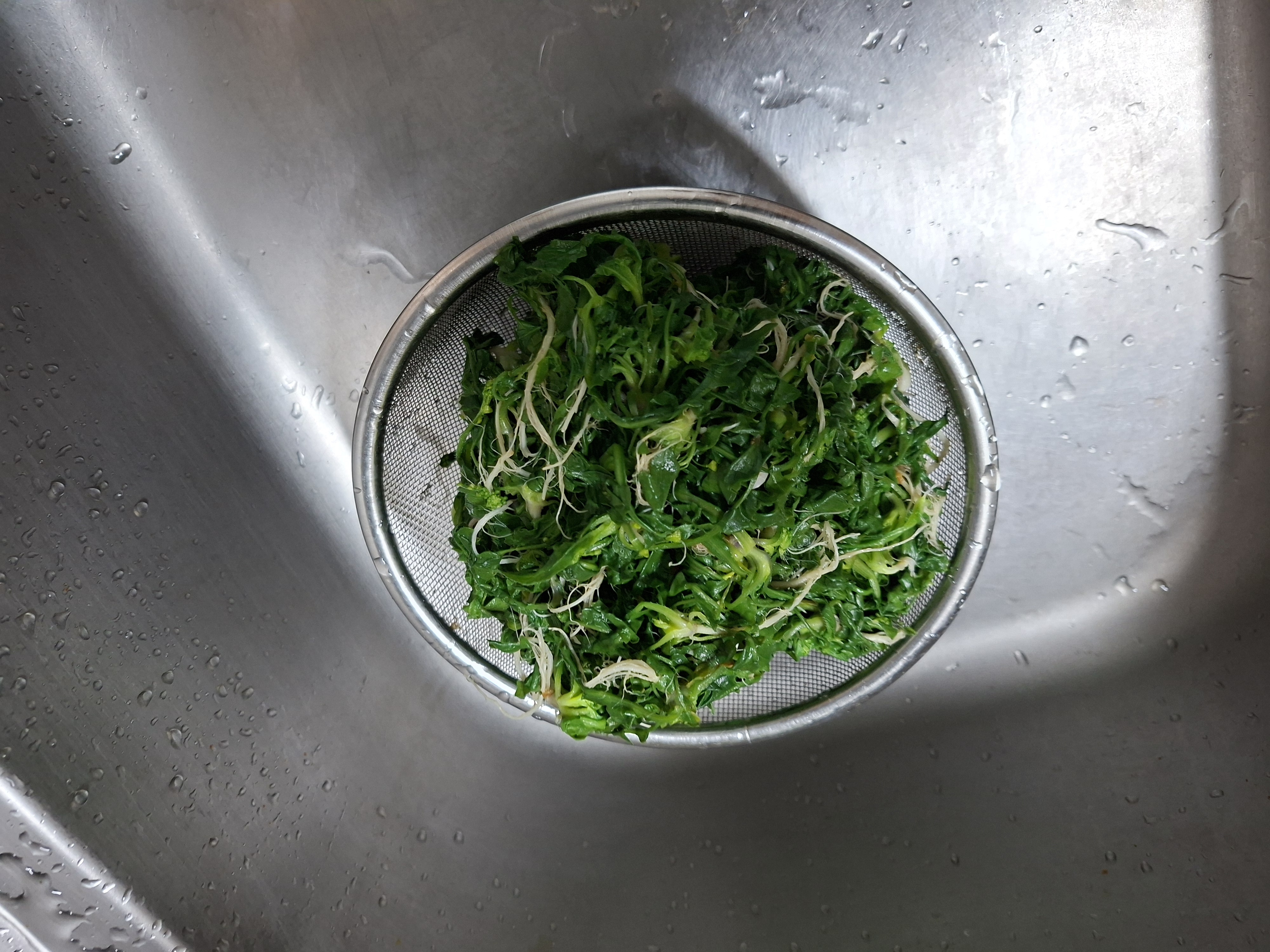 끓는 물에 데치려고 씻어 놓은 냉이는
