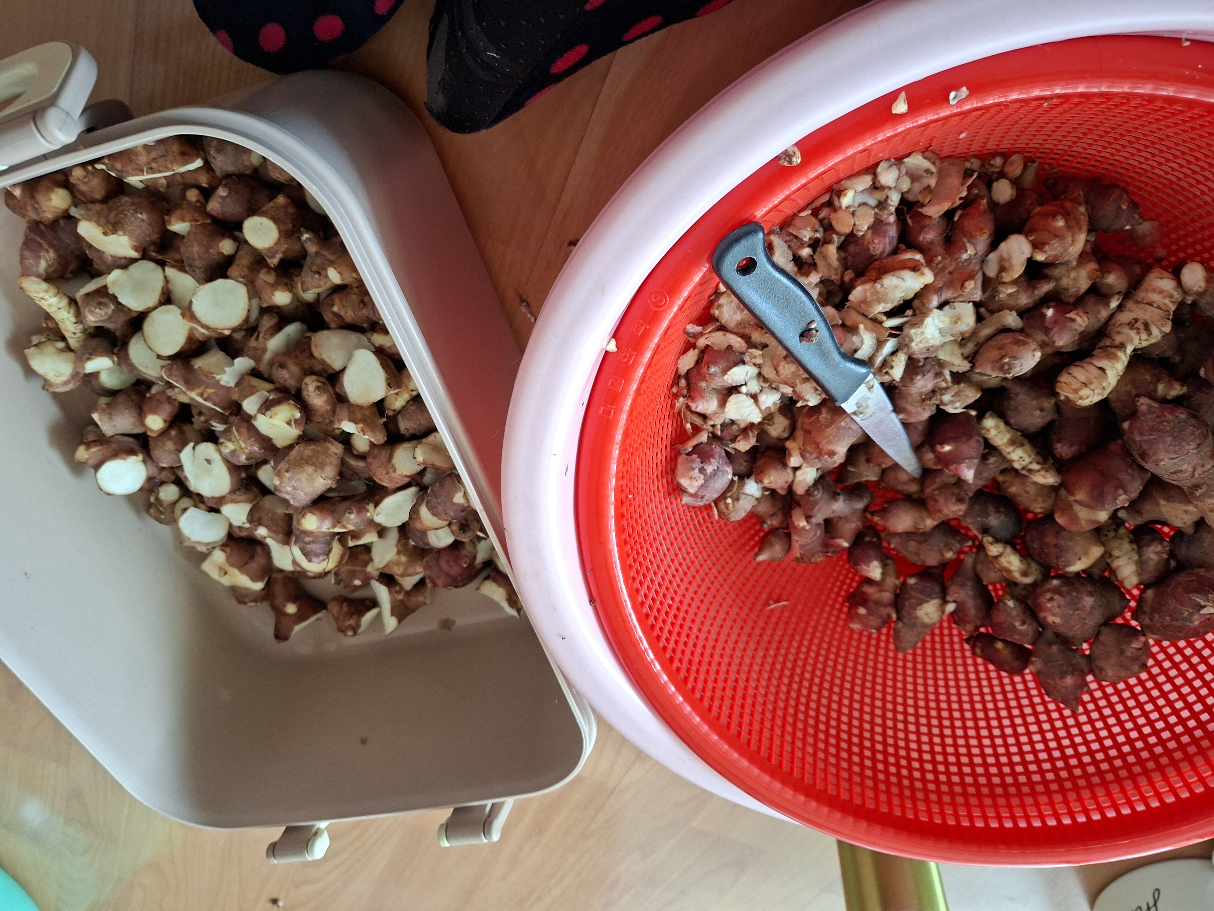 엊그제 다리를 다쳐가면서 캐낸 돼지감자는